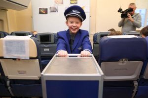 Первым пунктом программы стал учебно-тренировочный центр, где готовят будущих пилотов и техников. Помимо рассказа об истории аэропорта и демонстрации моделей авиационной техники, юные посетители получили возможность почувствовать себя настоящими летчиками. После краткого инструктажа они смогли совершить виртуальный полет на тренажере самолета Ту-154.