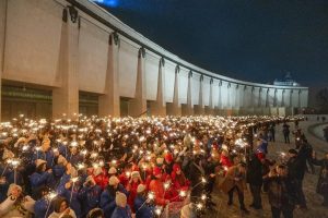 Флешмоб проводили на территории колоннады музея Победы. Акцию приурочили ко Дню полного освобождения Ленинграда от фашистской блокады. В рамках акции тысячи учеников школ и студентов колледжей Москвы зажгли олицетворяющие надежду бенгальские огни, рассказали в официальном Telegram-канале Детско-юношеского центра «Виктория».