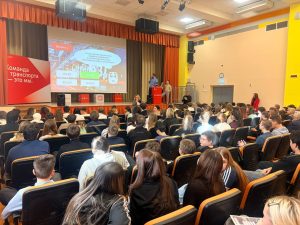 Викторина для учеников 7–9 классов состоялась во время проведения профориентационного мероприятия в рамках проекта «Московский транспорт. Детям» при поддержке администрации школы и управы района. Во встрече также приняли участие сотрудники транспортных предприятий.
